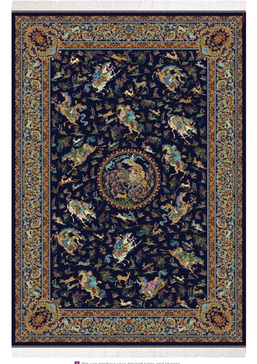 Bring the timeless artistry of a classic Persian design into your home with this Premium Navy Blue Area Rug. The deep, majestic navy base serves as a striking backdrop for an intricate, traditional pattern featuring a central medallion beautifully interwoven with stylized wildlife and floral motifs. Crafted with a soft yet dense pile, this rug offers both luxurious comfort underfoot and exceptional durability, making it perfect for high-traffic areas like your living room or dining room. The rich accents of gold, terracotta, and sage green ensure this elegant piece not only grounds your furniture but also adds a stunning, warm splash of color and refined sophistication to any space.