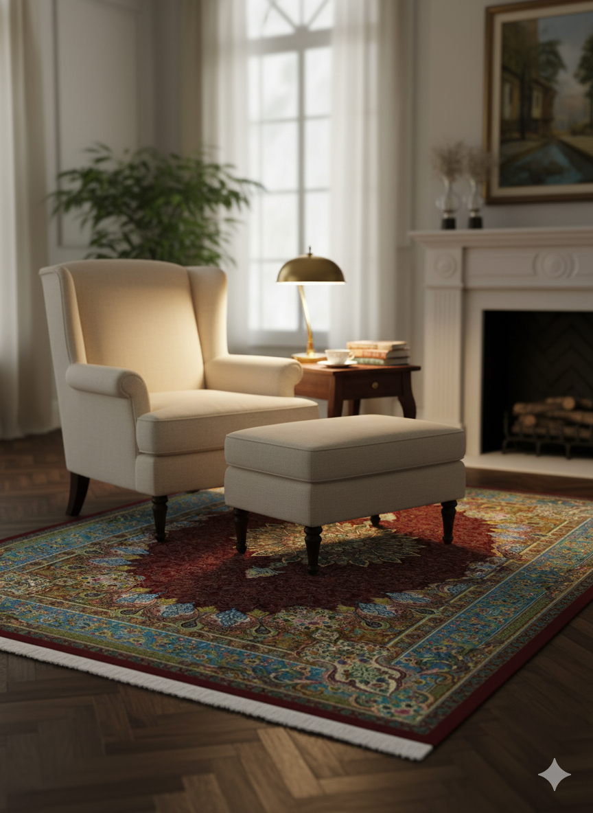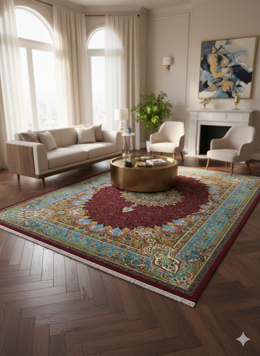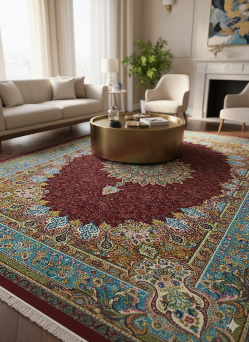Elegant Persian Style Medallion Area Rug – Traditional Floral & Border Design – Soft & Durable for Living Room