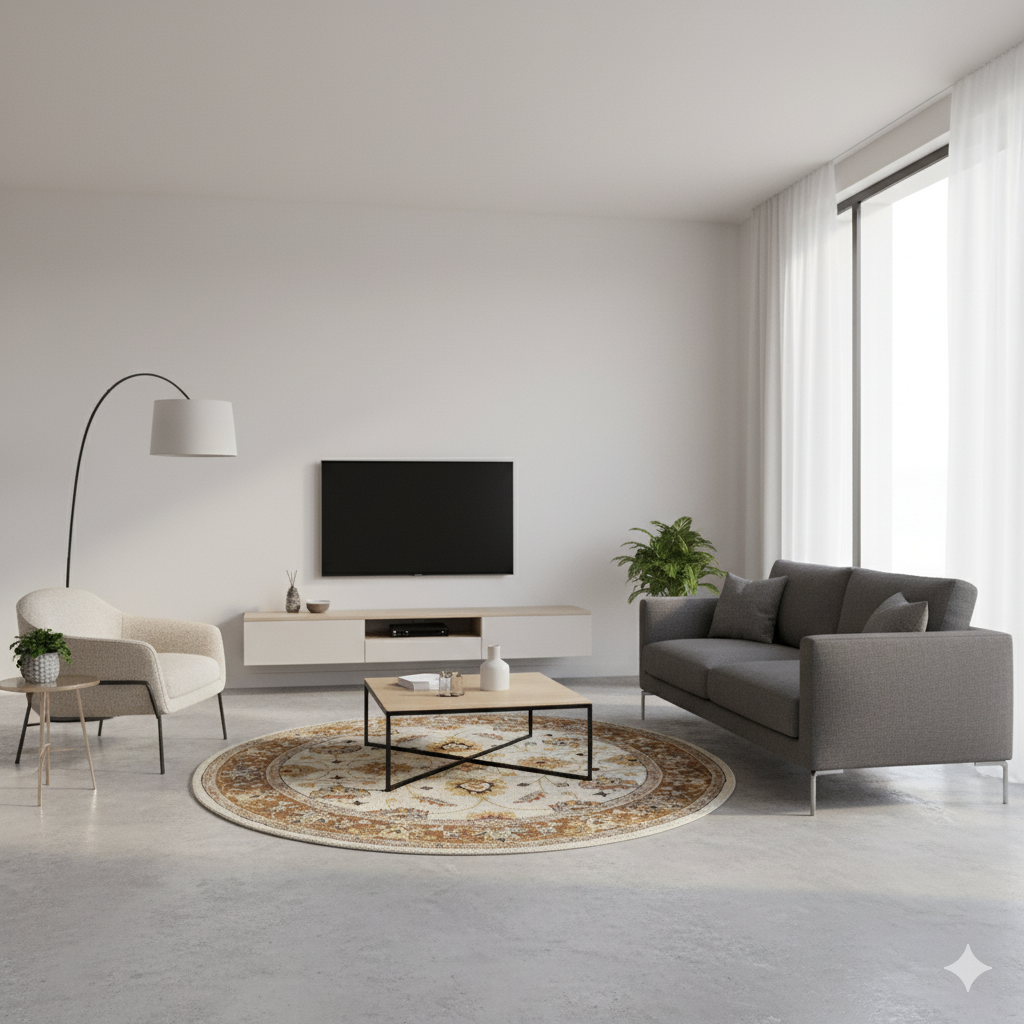 Transform your interiors with this round Oriental carpet, ideal for adding sophistication and comfort to your favorite spaces.