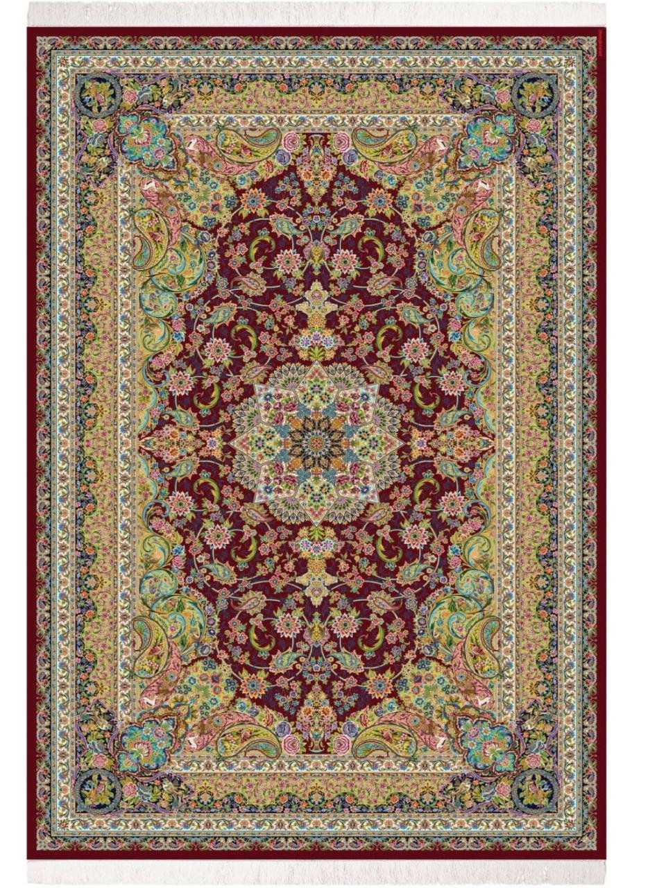 “Elevate your home decor with this Opulent Traditional Area Rug, showcasing a magnificent Maroon (or Ruby Red/Burgundy) base that exudes warmth and sophistication. Adorned with a classic Persian-inspired floral medallion at its heart, this rug is a masterpiece of intricate design. The rich central motif is beautifully complemented by delicate botanical patterns and elegant paisley elements in a vibrant palette of Gold, Cream, Teal, Light Blue, and subtle Pinks. Perfect for adding a touch of regal charm and timeless elegance to your living room, dining area, or bedroom, this rug not only defines your space but also provides a luxurious feel underfoot. Its detailed borders frame the design, completing a look that is both grand and inviting.”