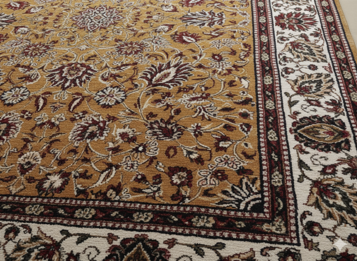 Elevate your living space with this exquisite Traditional Persian-Style Area Rug. Featuring a classic, richly detailed floral medallion pattern in striking shades of Yellow Gold, Burgundy Red, and Cream, this rug instantly adds a touch of timeless elegance and warmth to any room. Crafted for both beauty and durability, its dense pile provides a soft, comfortable feel underfoot, making it the perfect centerpiece for your living room, dining room, or master bedroom. The intricate border and fade-resistant colors ensure this beautiful piece will anchor your décor with sophisticated style for years to come.